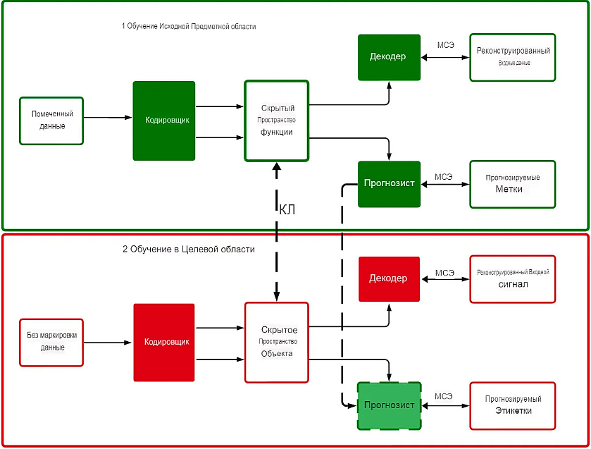 Затем модель адаптирует свои возможности к новой фотоэлектрической установке, для которой нет меток данных. Она сохраняет прогноз из источника и обучает кодировщик-декодировщик только путём минимизации дивергенции Кульбака — Лейблера (KL). Дивергенция Кульбака — Лейблера — это статистическая мера, представляющая собой расстояние между двумя распределениями.