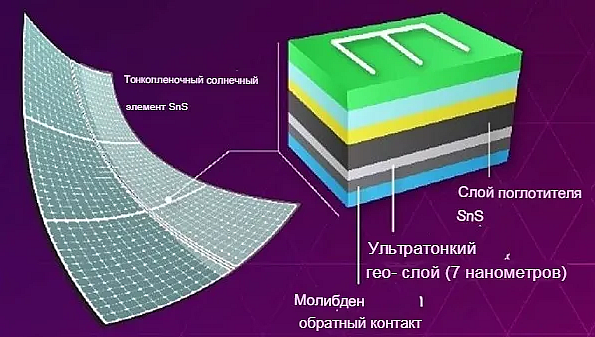 Несмотря на то, что моносульфид олова (SnS) известен как дешёвый и распространённый материал с многообещающими характеристиками для использования в солнечных батареях, работать с ним непросто. Исследователям до сих пор не удавалось добиться эффективности преобразования более 5 % с использованием этого материала, а интерес исследовательского сообщества к нему отстаёт от интереса к кестеритовым, или медно-цинково-оловянным, солнечным батареям.